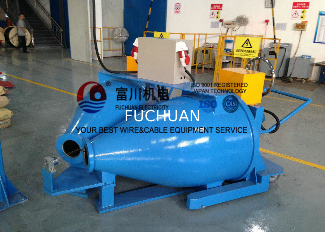 This machine contains:lut barrel pay off machine,straighten,main machine,injection machine,control case,tank,double wheel capstan,accumulator,double shaft take up and other equipments.The chosen equipments:copper wire preheater,printer,OD measuring instrument,spark tester and PLC control.